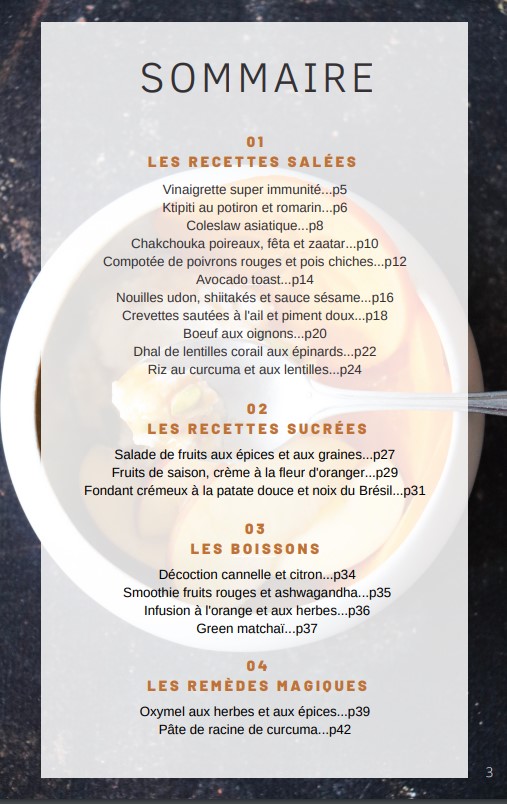 Trouvez ci-dessous le sommaire de l'ebook ainsi que quelques photos de recettes !