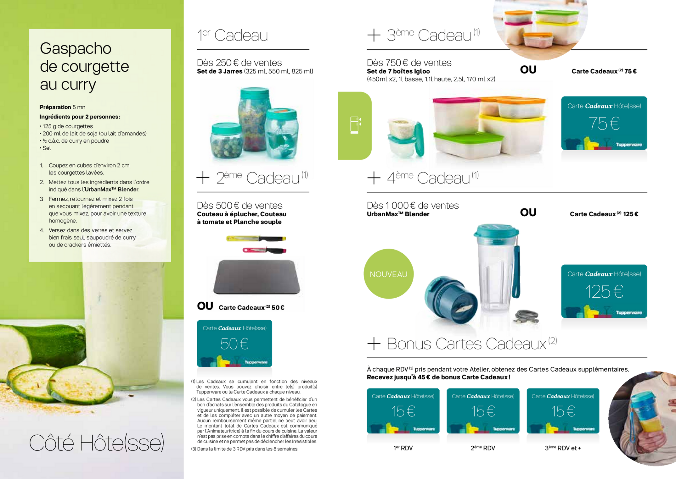En tant qu'hôtesse d'un atelier cuisine Tupperware (présentiel, digital ou juste en regroupant des commandes), vous serez le centre de l'attention, recevant des conseils personnalisés de nos experts culinaires, découvrant les dernières tendances en matière de cuisine et d'organisation domestique, et bénéficiant d'offres spéciales réservées aux hôtesses. Préparez-vous à vivre une expérience enrichissante et amusante, tout en obtenant des récompenses fantastiques. Laissez votre passion pour la cuisine briller et soyez l'hôtesse qui impressionnera ses invités avec les produits de qualité exceptionnelle de Tupperware. C'est le moment idéal pour créer des souvenirs durables et profiter des avantages uniques réservés aux hôtesses d'ateliers cuisine Tupperware.