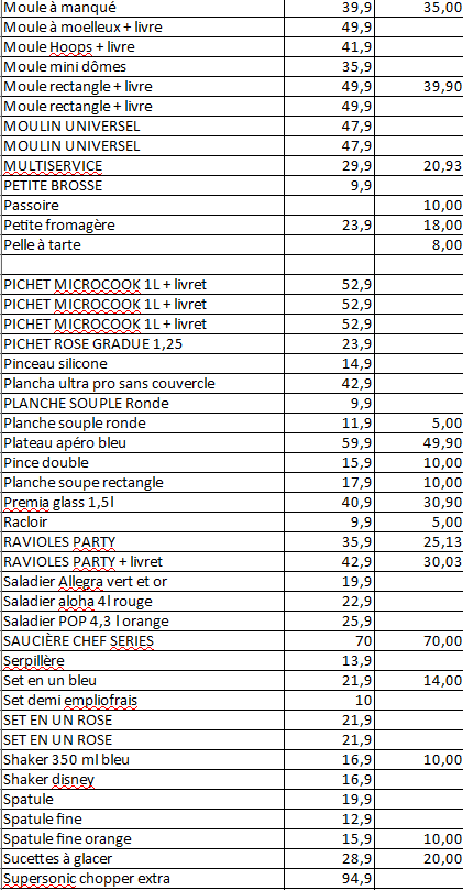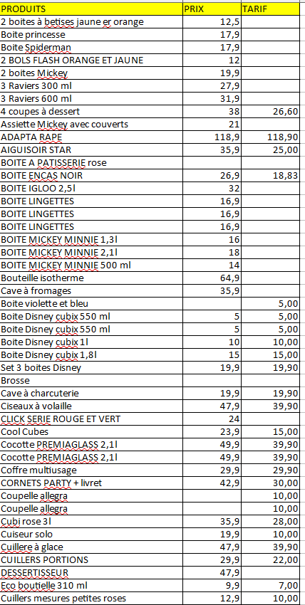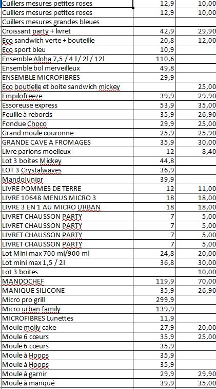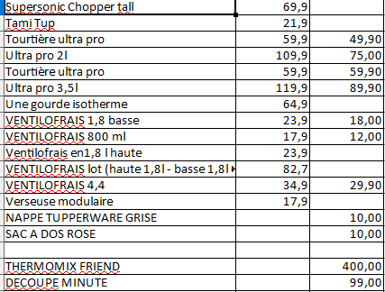 Si vous n'êtes pas abonné à ce groupe, je vous mets la liste des produits disponibles à la vente.